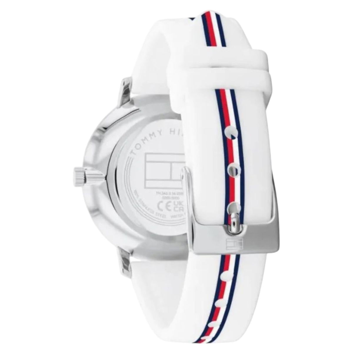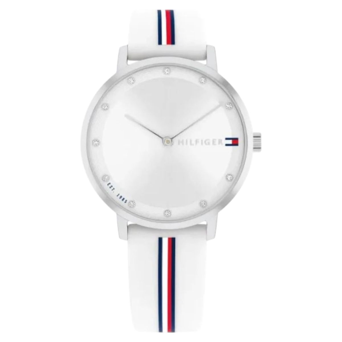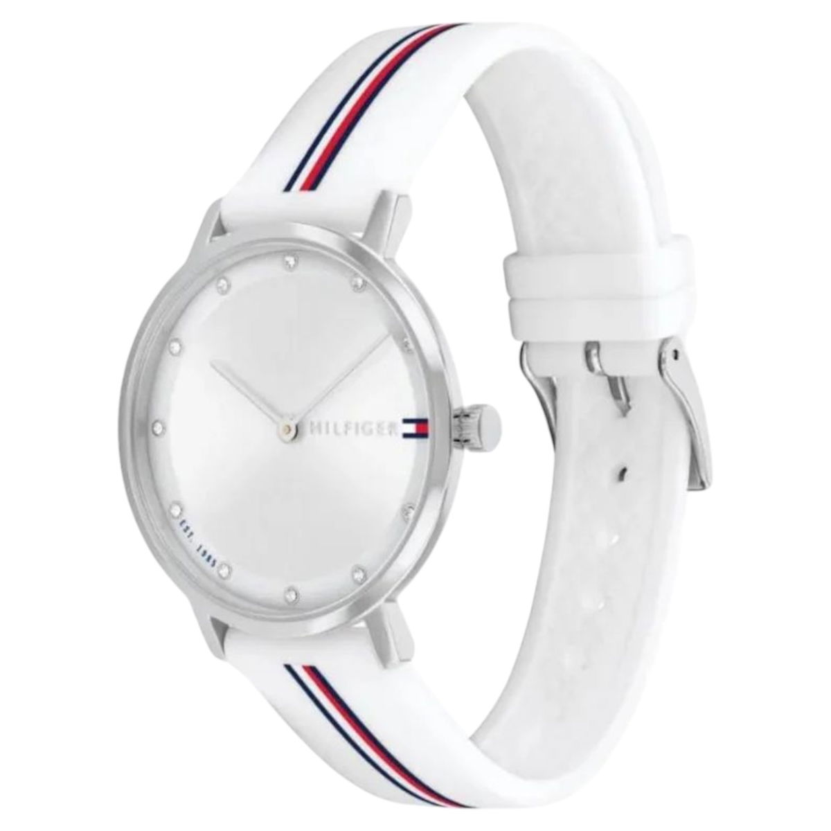 Reloj tommy hilfiger para mujer, tamaño de la caja 35 mm de acero inoxidable, tamaño del pulso 210 mm de silicona, color blanco, pulso de 210 mm, resistencia al agua hasta 30 metros