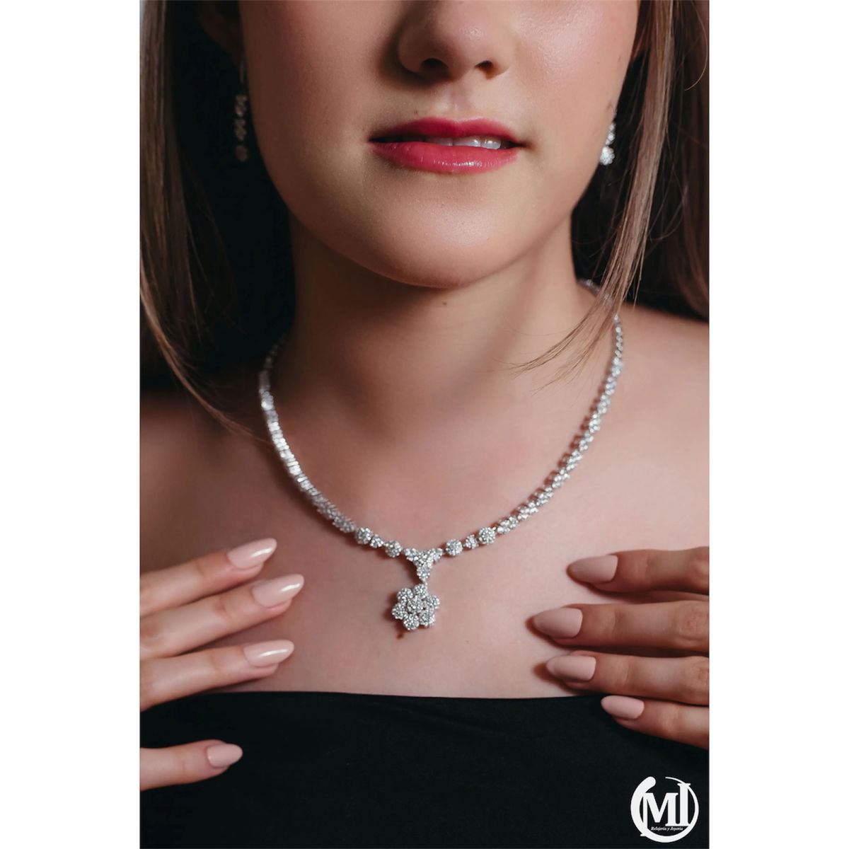 Compuesto por: Gargantilla, pulsera, aros y anillo.