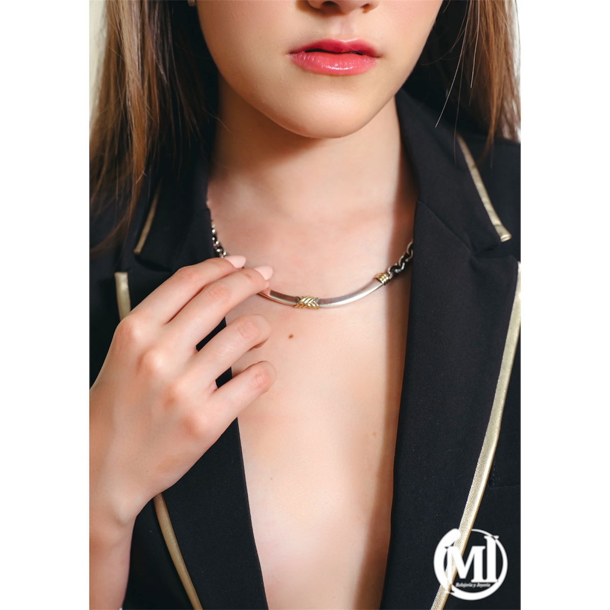 Gargantilla maciza en plata y oro