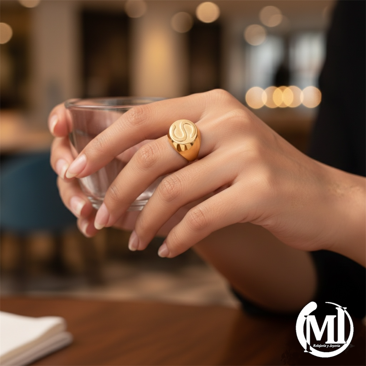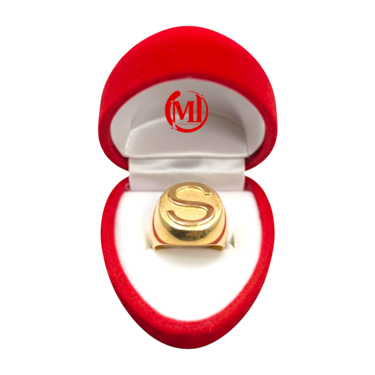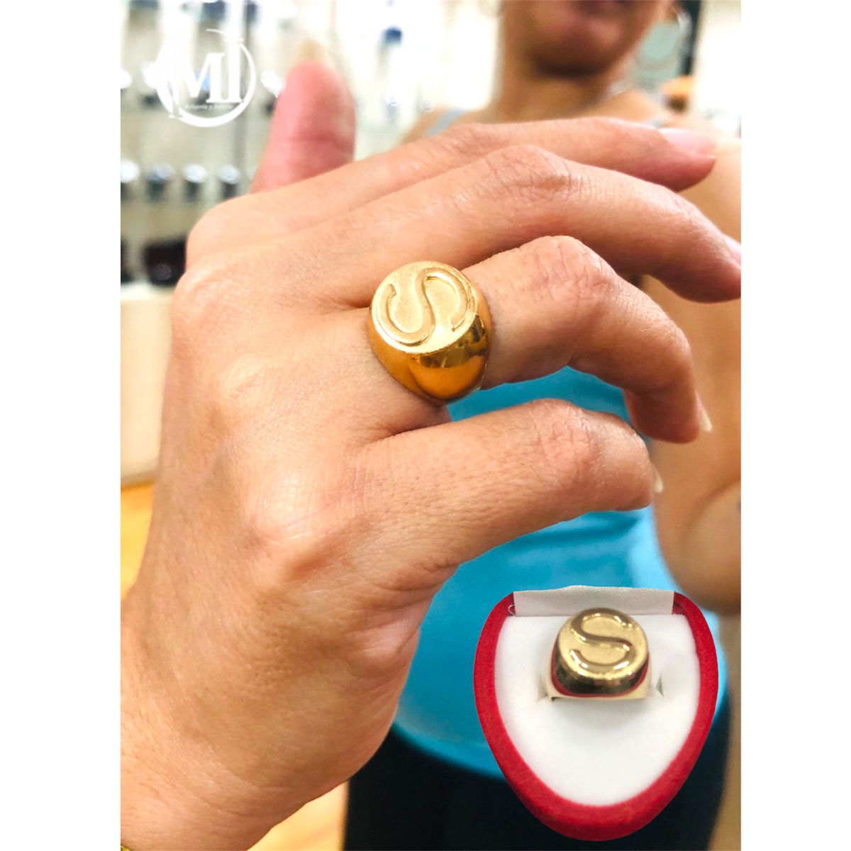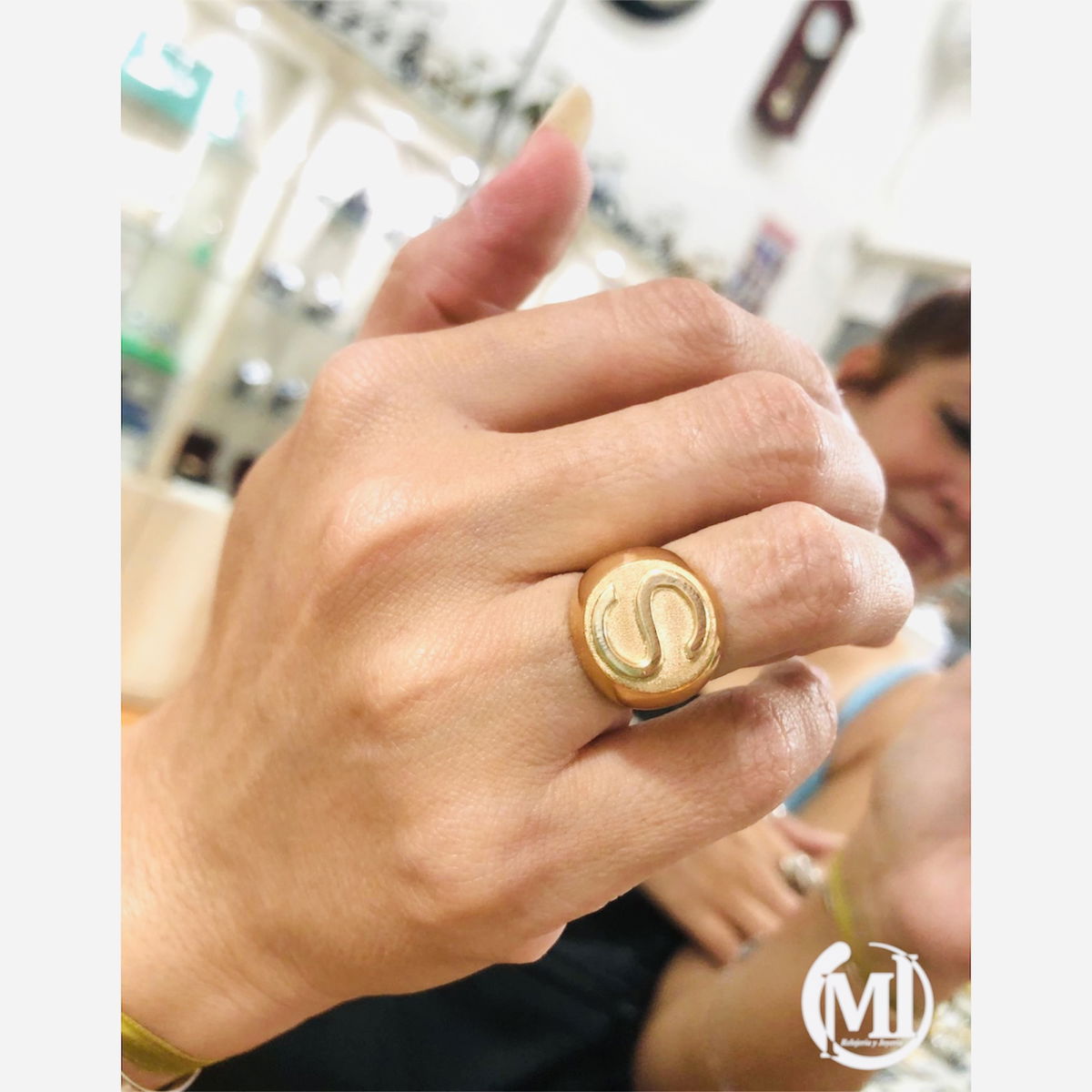 En la foto vemos a nuestra cliente con anillo macizo sello, inicial ¨S¨.-