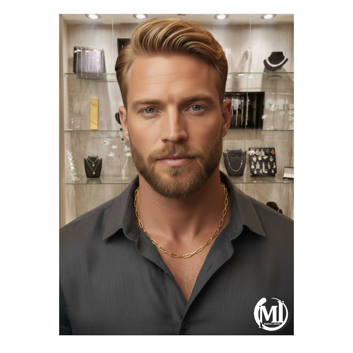 Cadena de Oro 18K – Eslabón Alargado (Estilo Rectangular)